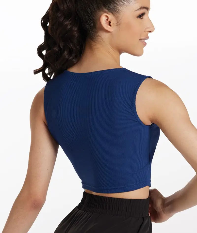 Navy Ribbed V-neck crop top